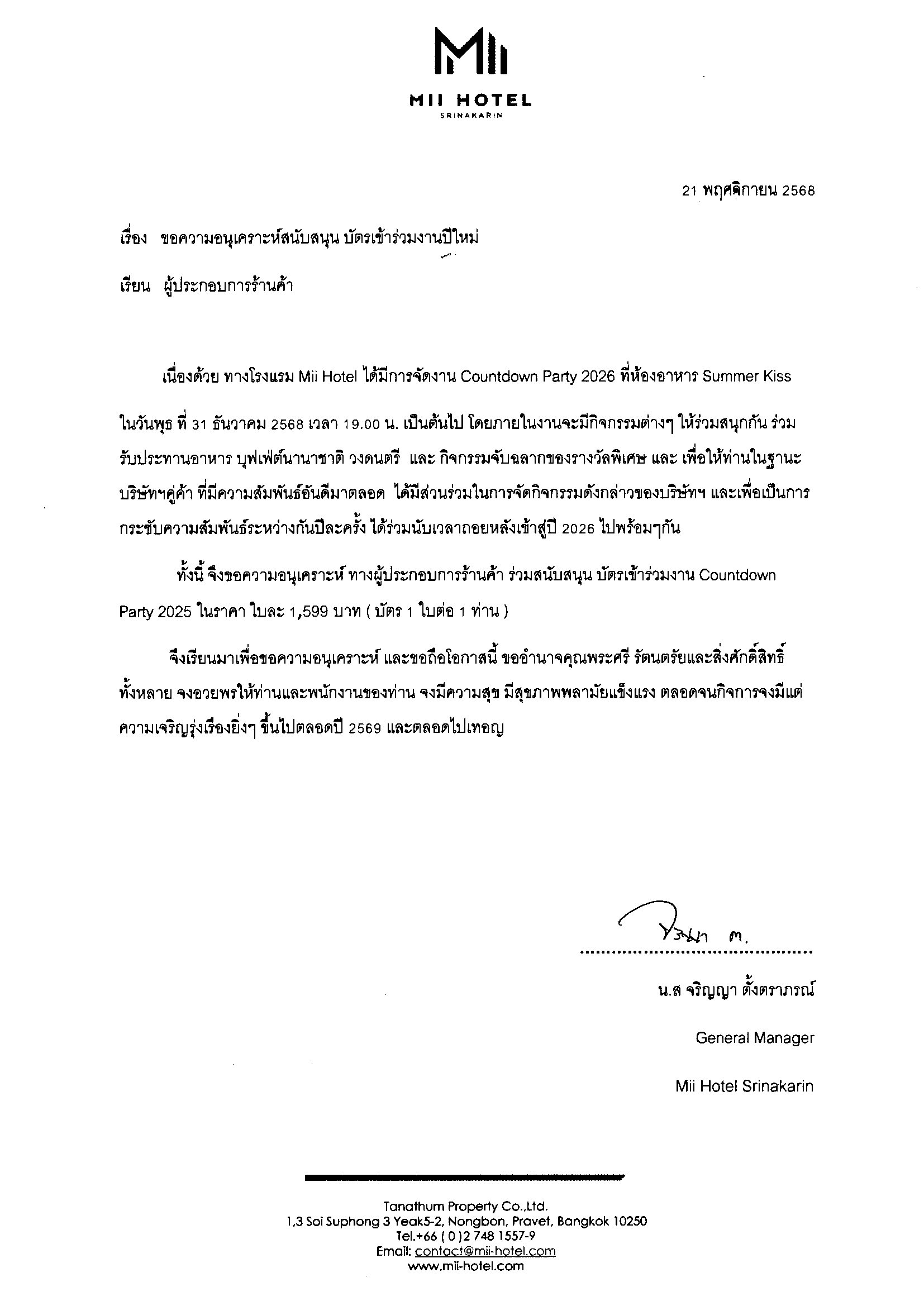 ขอสนับสนุนปีใหม่ โครงการ Mii Hotel รายละเอียดตามไฟล์แนบค่ะ