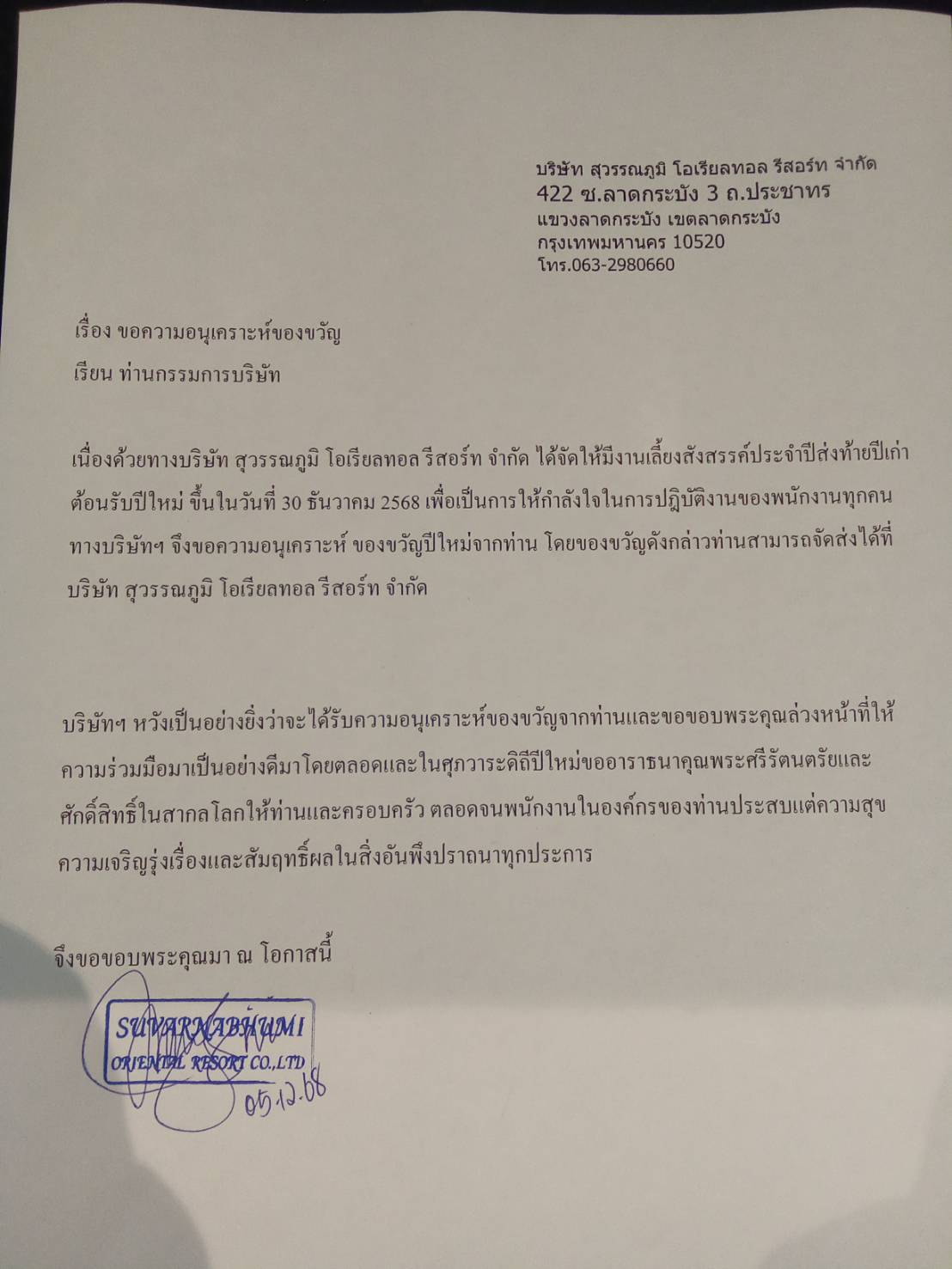เบอร์ติดต่อ 063-2980660 Suvarnabhumi oriental
