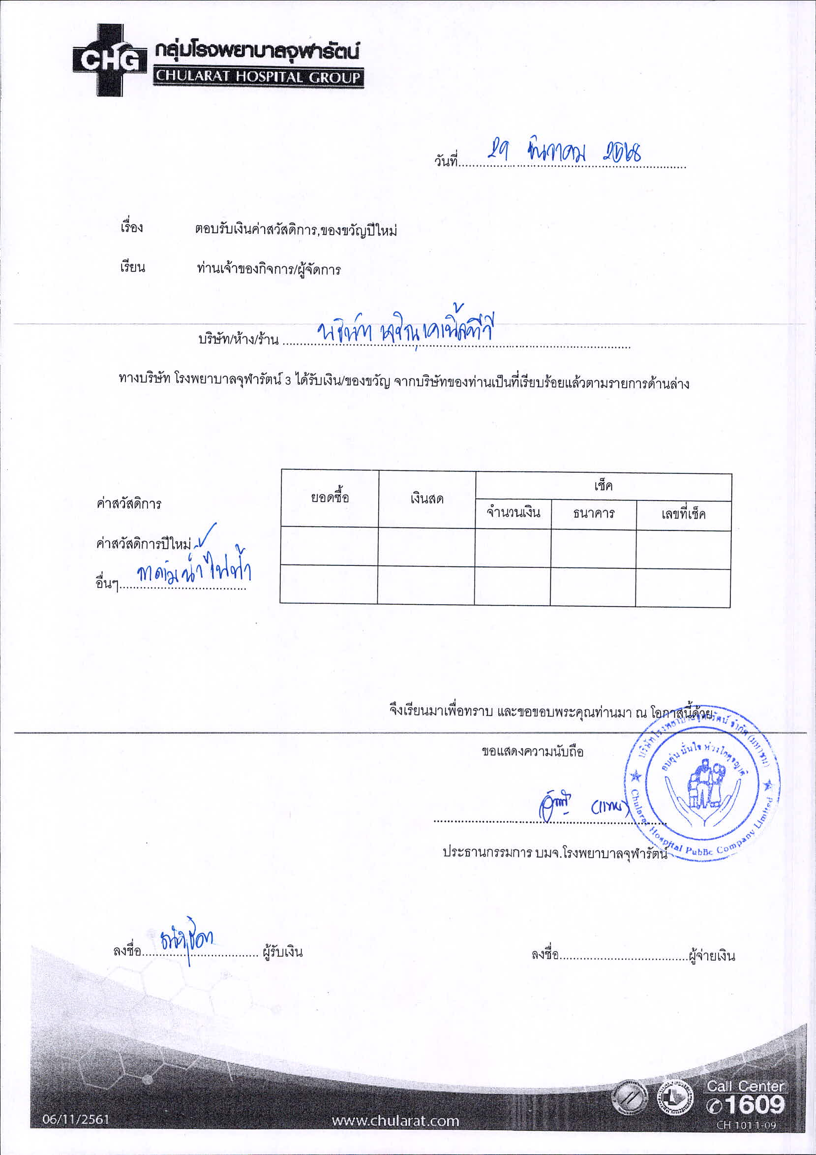 ขอสนับสนุนของขวัญสำหรับ โครงการ จุฬารัตน์ 3
