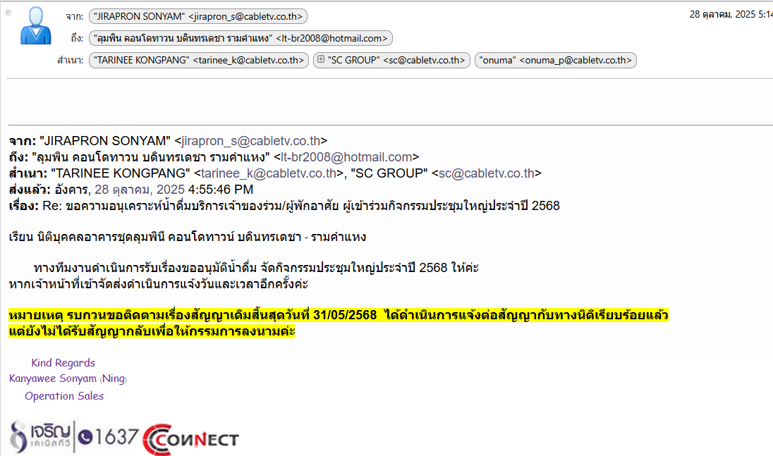 openขอความอนุเคราะห์น้ำดื่มบริการเจ้าของร่วม/ผู้พักอาศัย ผู้เข้าร่วมกิจกรรมประชุมใหญ่ประจำปี 2568