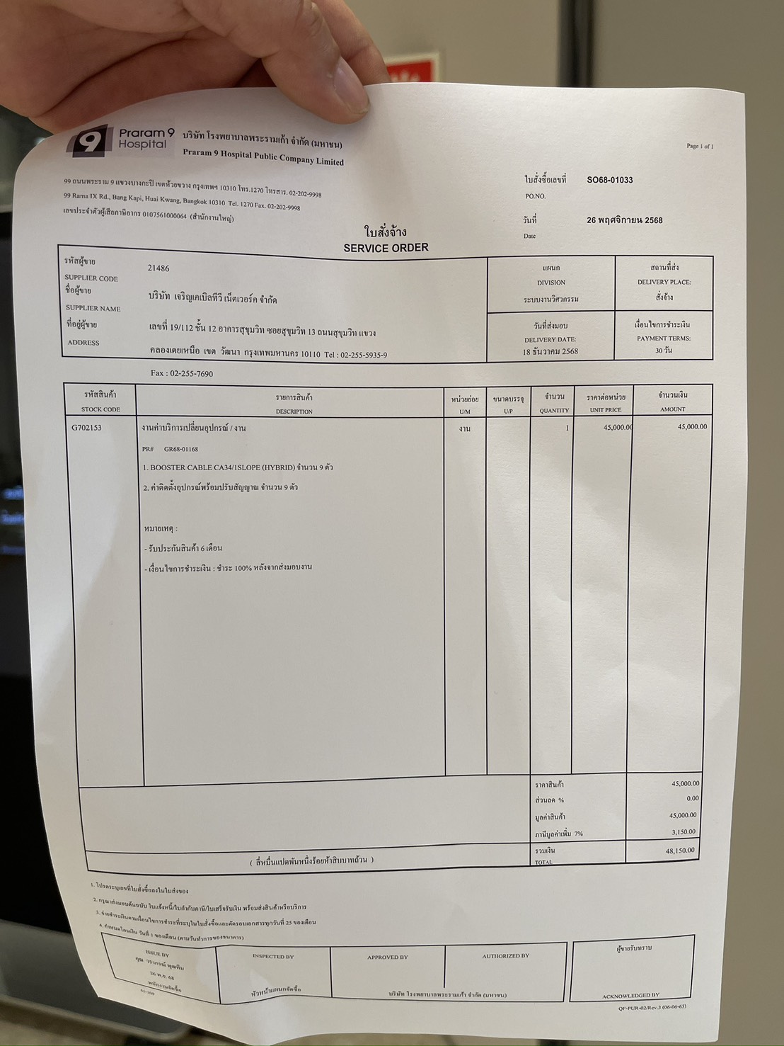 ส่งใบเบิกอุปกรณ์ตามเอกสารแนบครับ