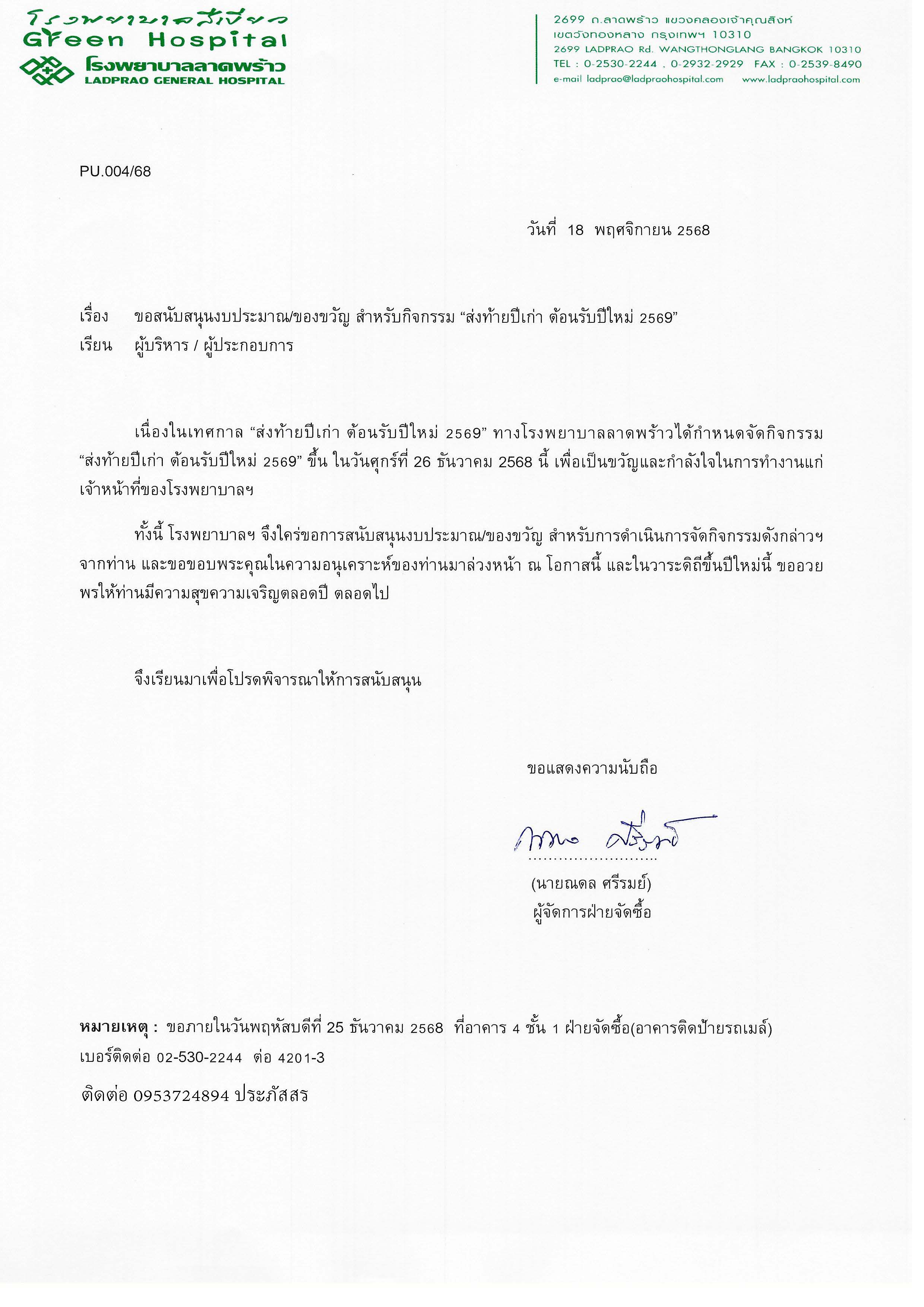 เนื่องด้วยทางโรงพยาบาลลาดพร้าว ได้กำหนดวันจัดกิจกรรม ส่งท้ายปีเก่า ต้อนรับปีใหม่ 2569