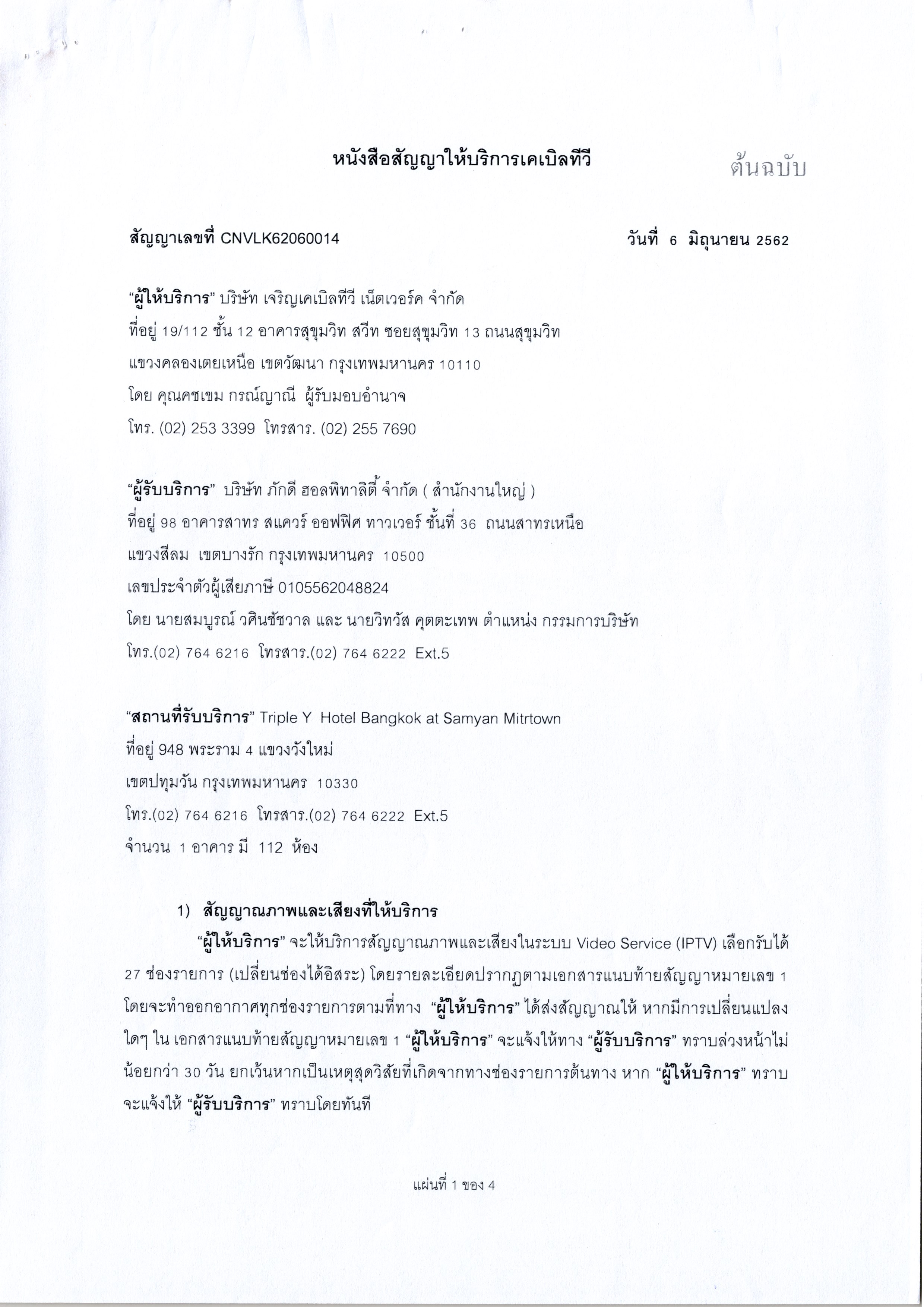 รบกวนขอสัญญาโครงการ สามย่านมิดทาวน์ ฉบับที่มีการทำสัญญาครั้งแรก เพื่อเช็ครายละเอียดอุปกรณ์ที่บริษํทติดตั้งให้ลูกค้าค่ะ