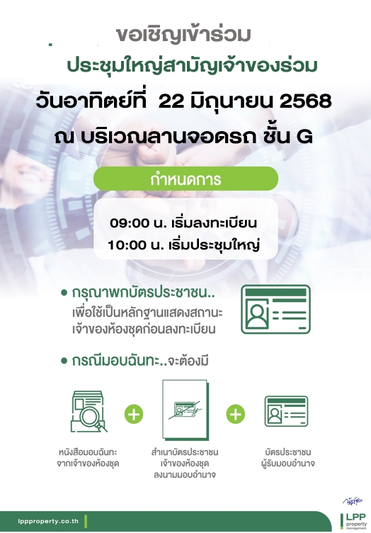 เนื่องด้วย นิติบุคคลอาคารชุด ลุมพินี เพลส รามอินทรา-หลักสี่ จะจัดกิจกรรมประชุมใหญ่ของโครงการ ประจำปี 2568