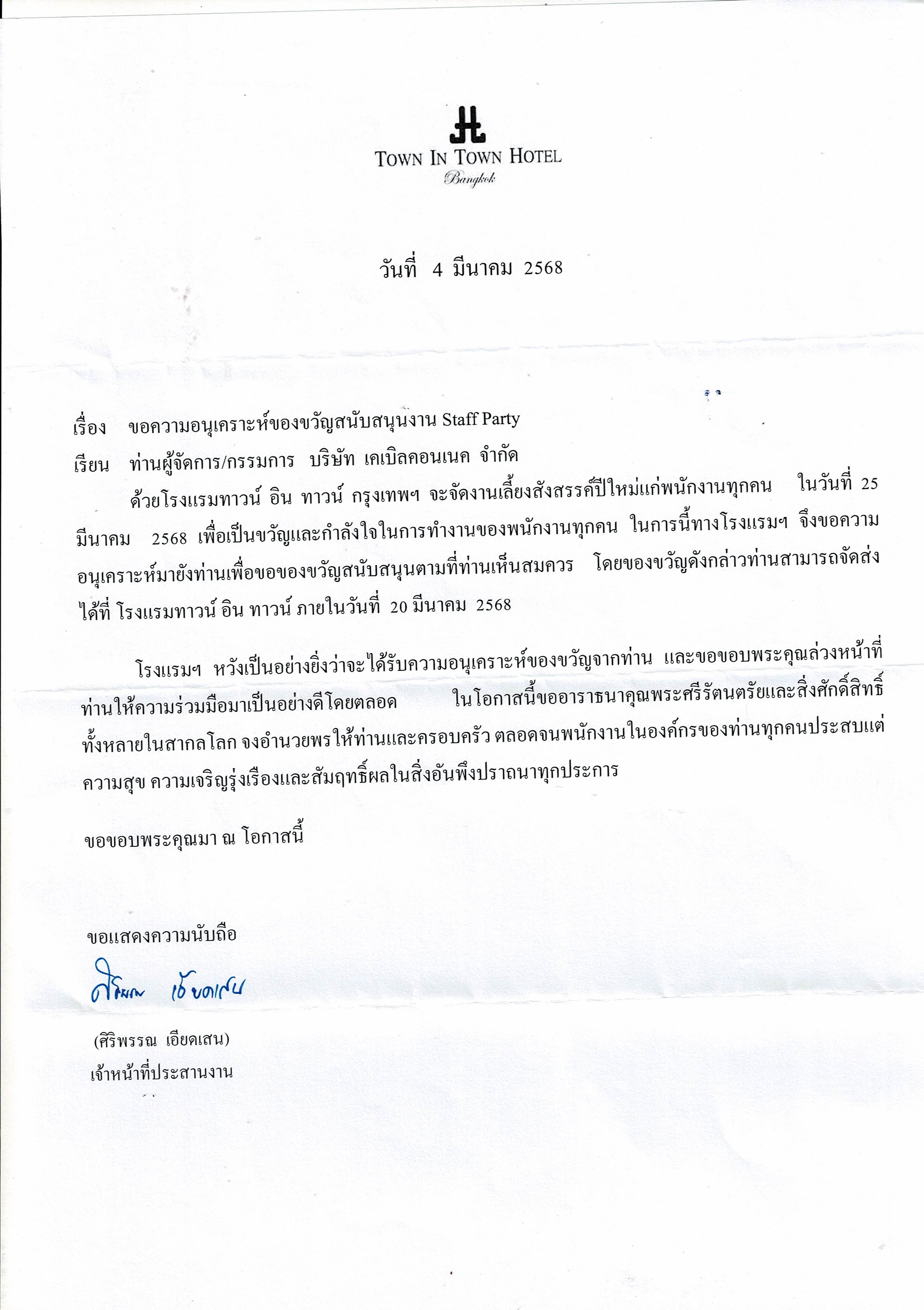 มีค่าบริการเคเบิลจำนวน 13,500 บาท (ไม่รวม vat)