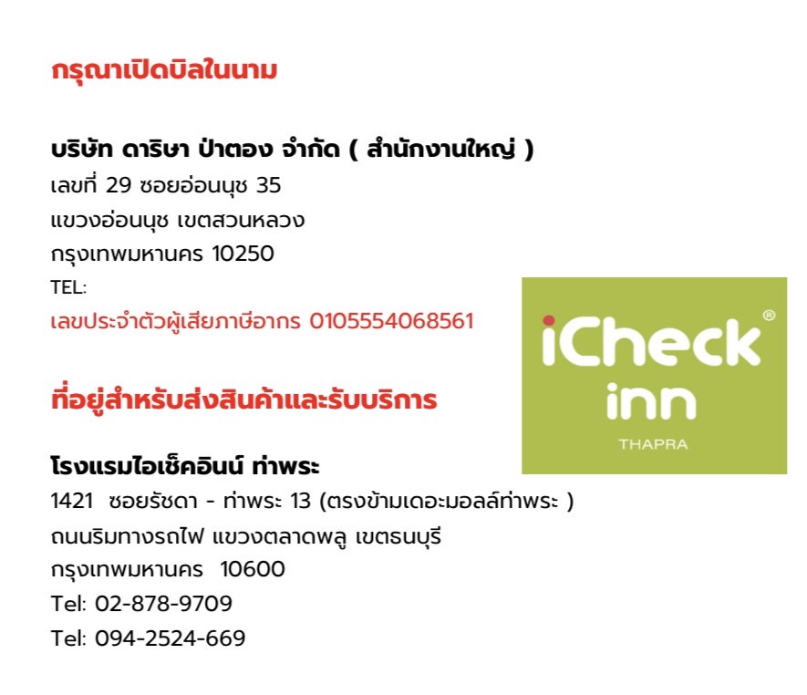 ในนามบริษัท ดาริษา ป่าตอง จำกัด (สำนักงานใหญ่)