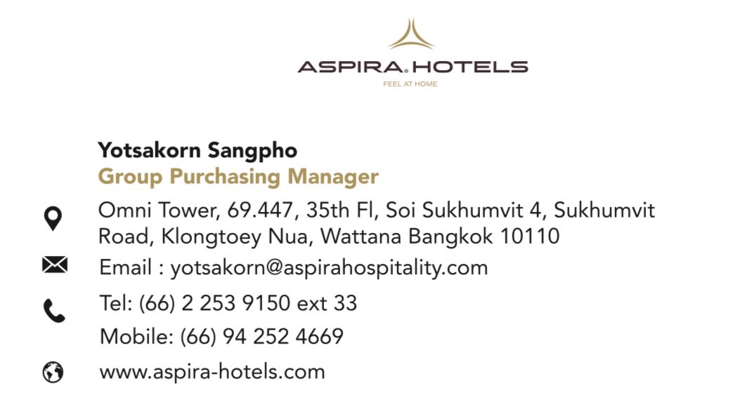 Email : yotsakorn@aspirahospitality.com