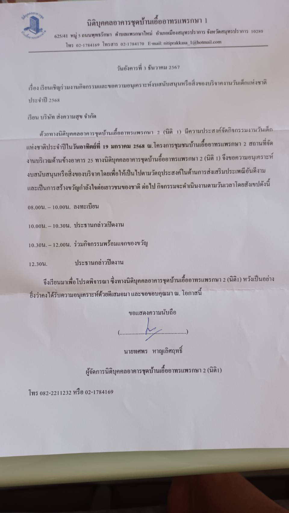 เรียน ผู้ที่เกี่ยวข้องลูกค้าของบสนับสนุนงานวันเด็ก เสาร์ที่ 11 ม.ค 68 ค่ะ รายละเอียดคามไฟล์ที่แนบค่ะ