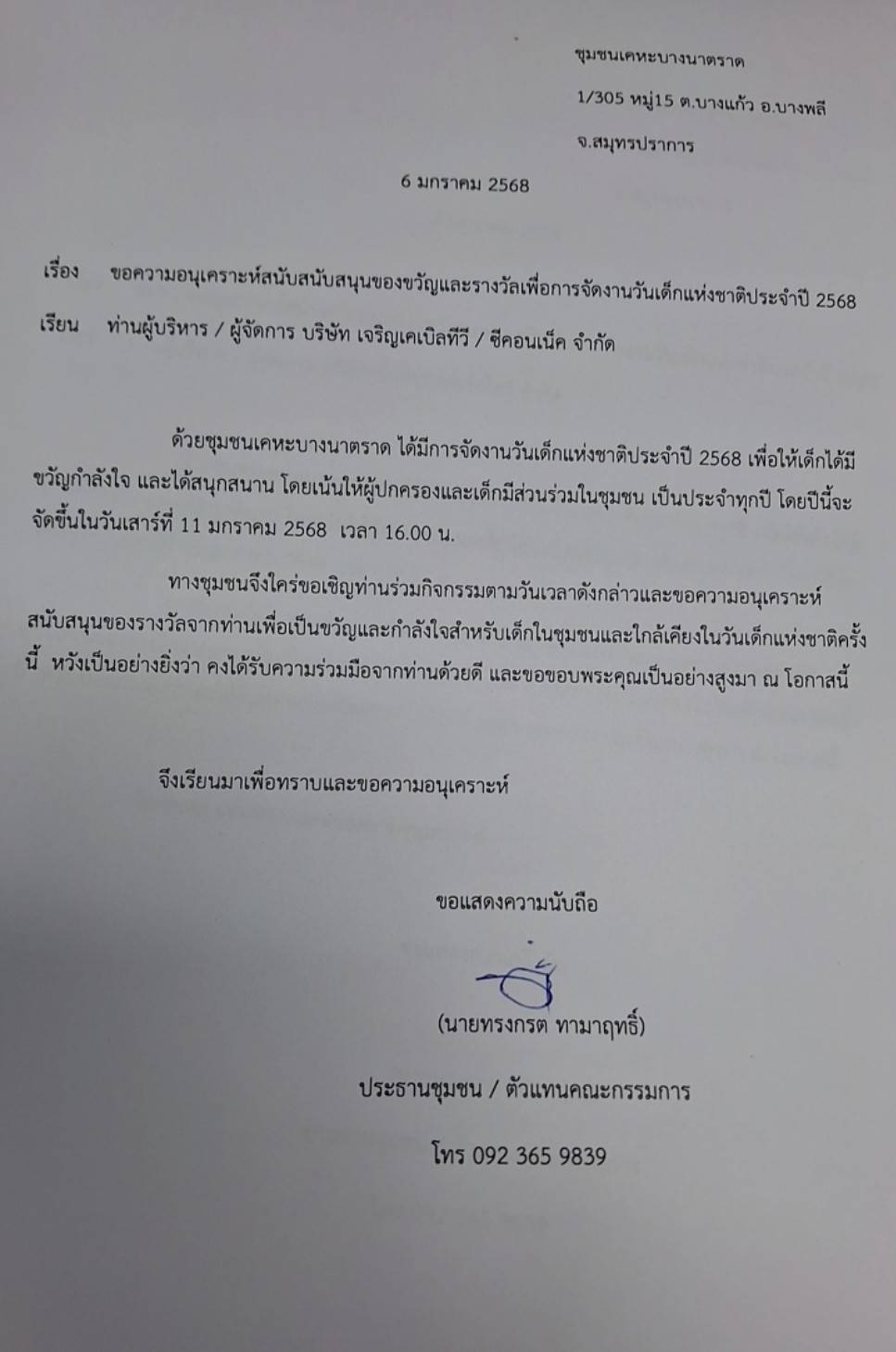 ด้วยชุมชนเคหะบางนาตราด มีความประสงค์ขอความอนุเคราะห์ของขวัญวันเด็ก