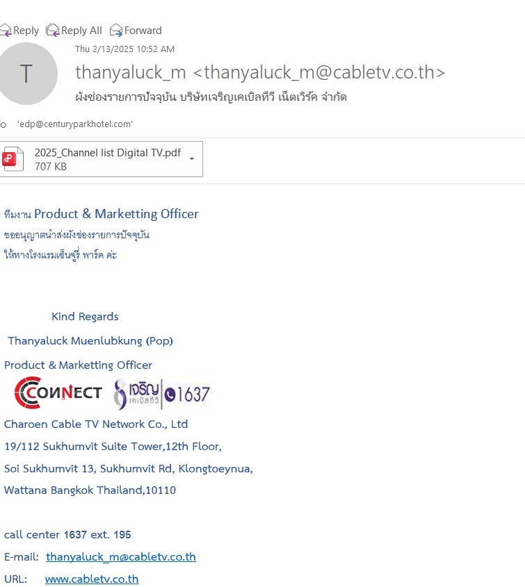 ส่งที่อีเมล์ edp@centuryparkhotel.com