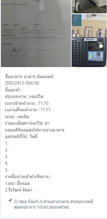 ขอแจ้งเปิดเคสเคลมกล่อง STB โครงการ Amaranth hotel ลูกค้าแจ้งกล่องเสียค่ะ