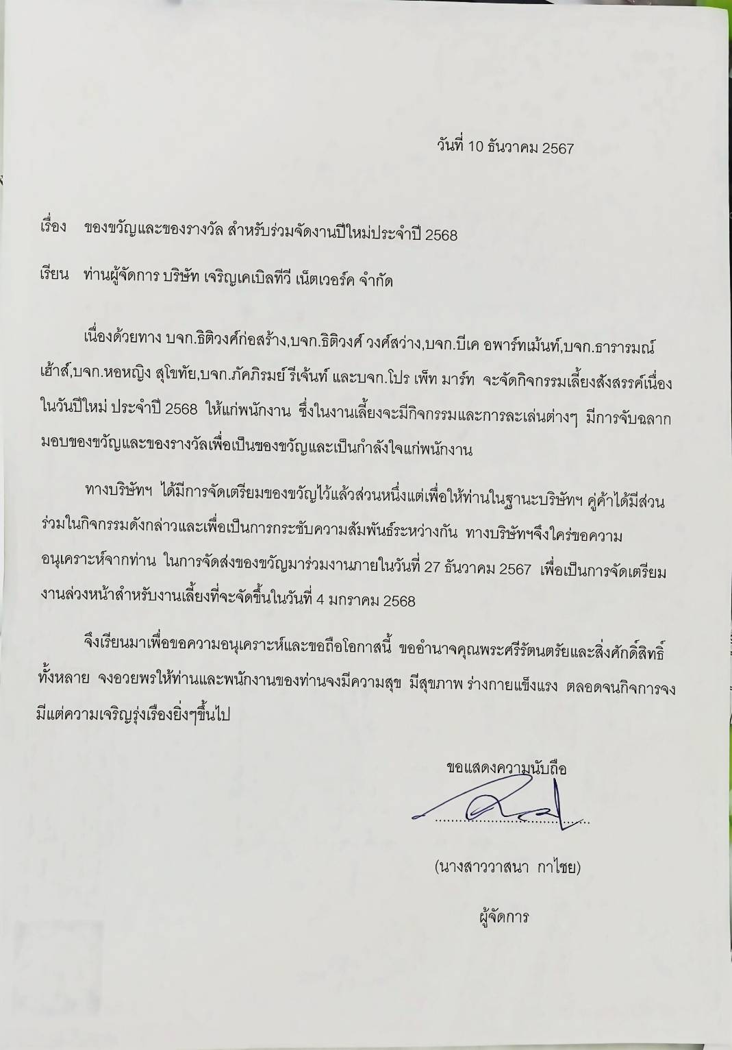 เนื่องด้วยลูกค้าเเจ้งหนังสือเพื่อขอของขวัญเเละของรางวัล สำหรับร่วมจัดงานปีใหม่ประจำปี 2568 ประกอบด้วยโครงการ ดังนี้