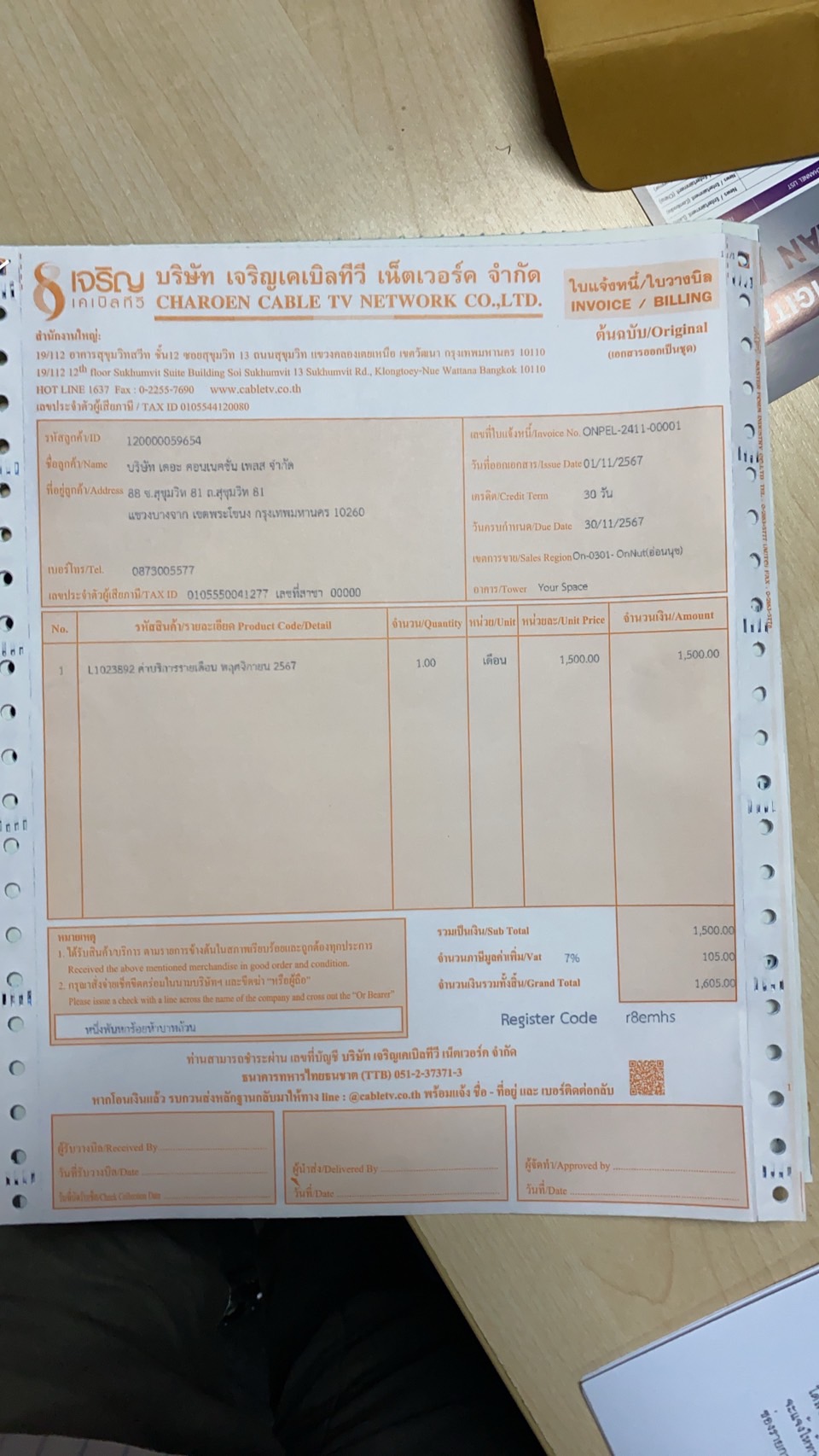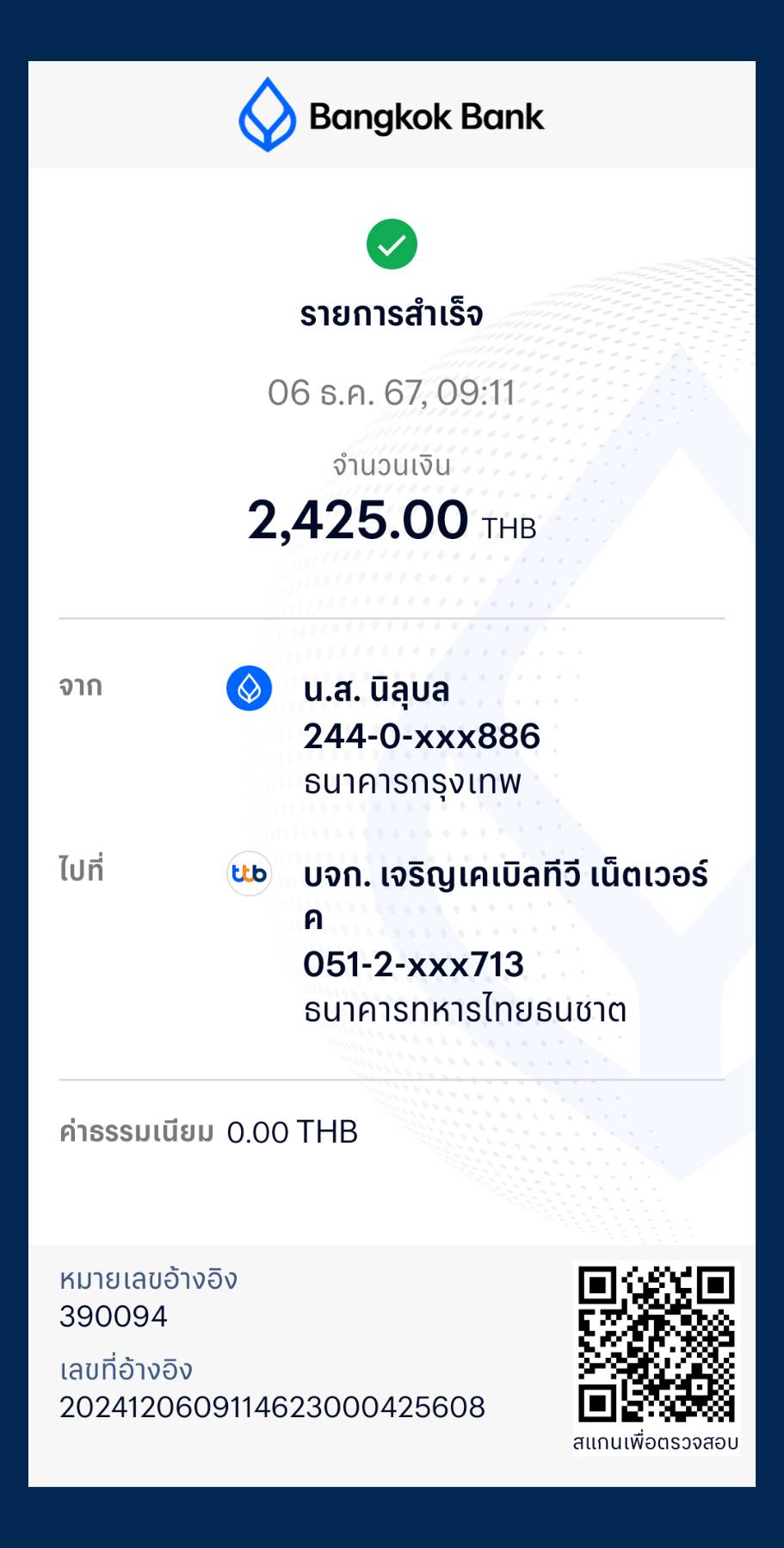 ลูกค้าขอรับค่าบริการที่จ่ายเกินในเดือนพฤศจิกายน 2567 คืนฝากดำเนินการให้ด้วยครับรายละเอียดตามเอกสารแนบ ขอบคุณครับ