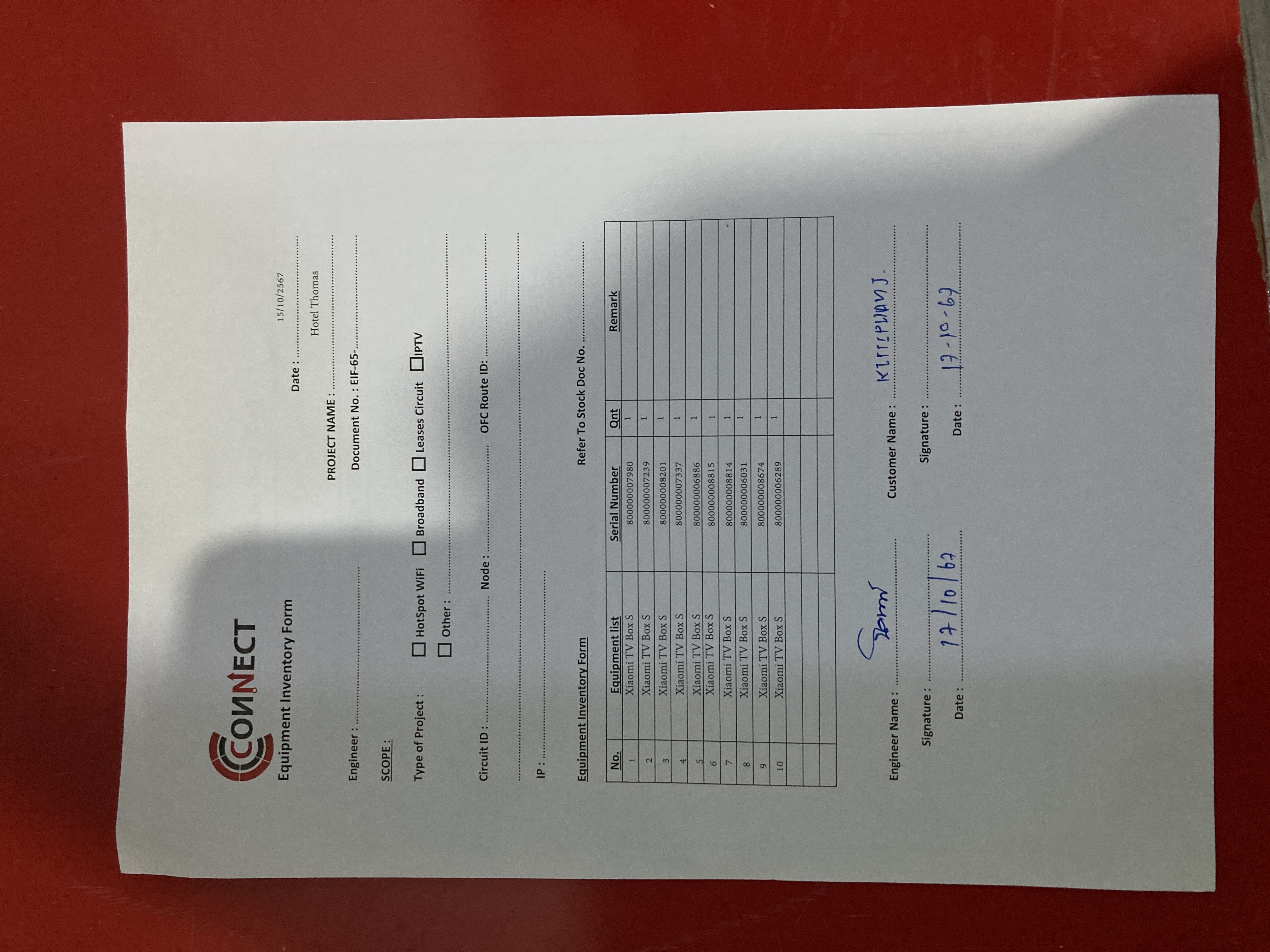 openแจ้งขอสัญญา Cable (ลูกค้าใหม่) และขอบิล โครงการ Hotel Thomas