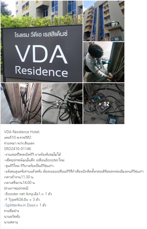เนื่องจากทางลูกค้าแจ้งว่าสัญญาณที่โครงการรับชมไม่ได้ ตรวจเช็คประมาณ 60 ห้อง รับสัญญาณได้อยู่ที่ 15 ห้องค่ะ