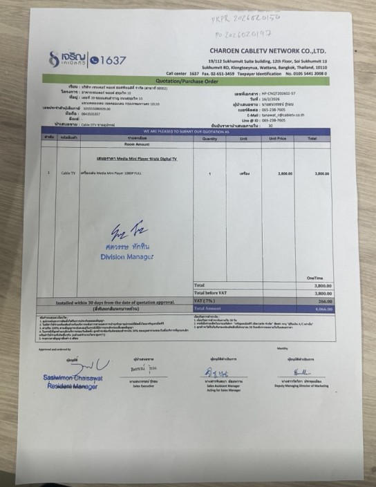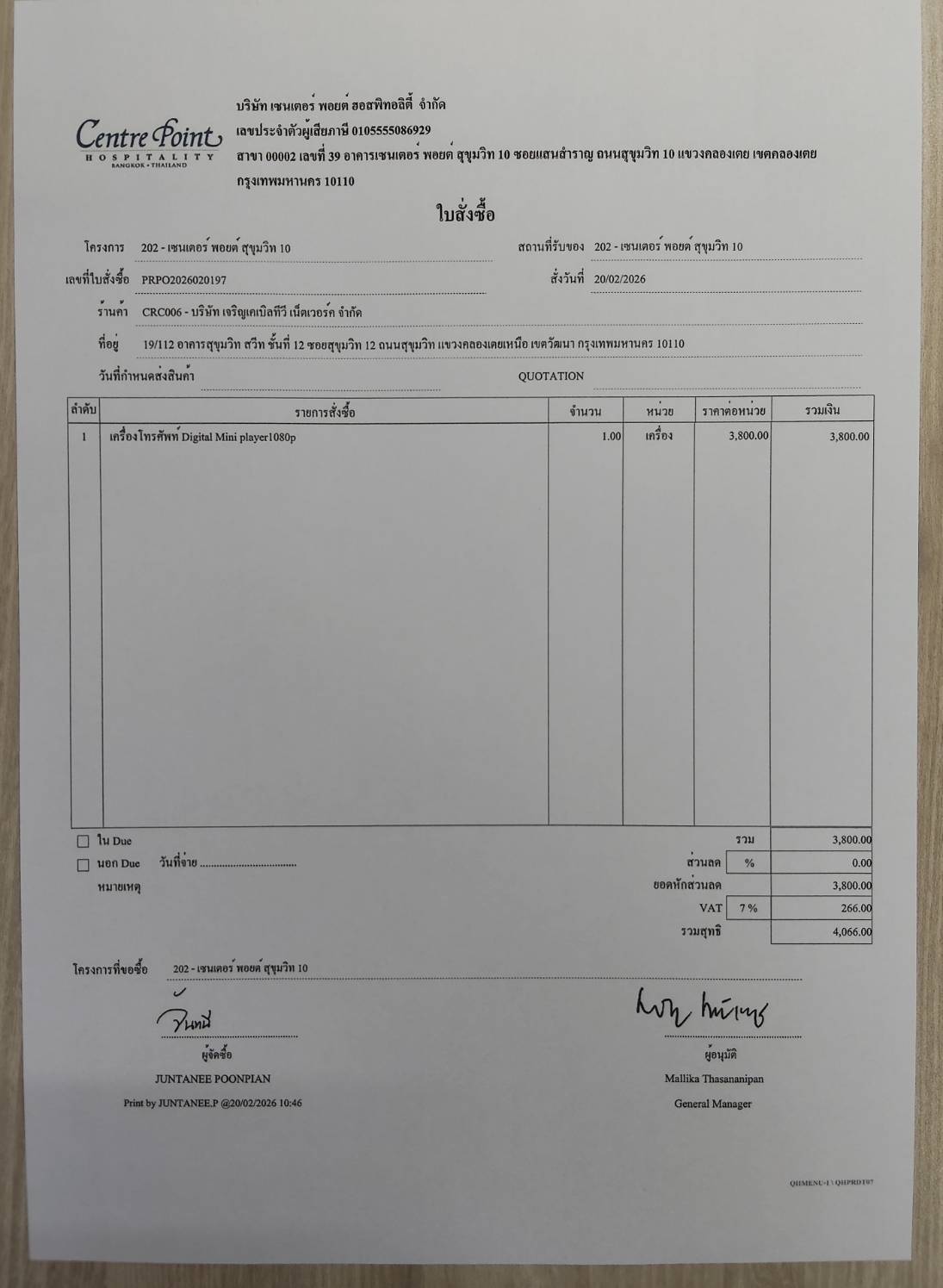 - ทีมเซลล์ขออนุมัติสั่งซื้อ เครื่องเล่น Center Media Mini Player 1080P FULL HDMI PLAYER HD MEDIA PLAYER USB AV VGA EU * สำหรับโครงการ อาคารเซนเตอร์ พอยต์ สุขุมวิท 10 (จำนวน 1 เครื่อง)